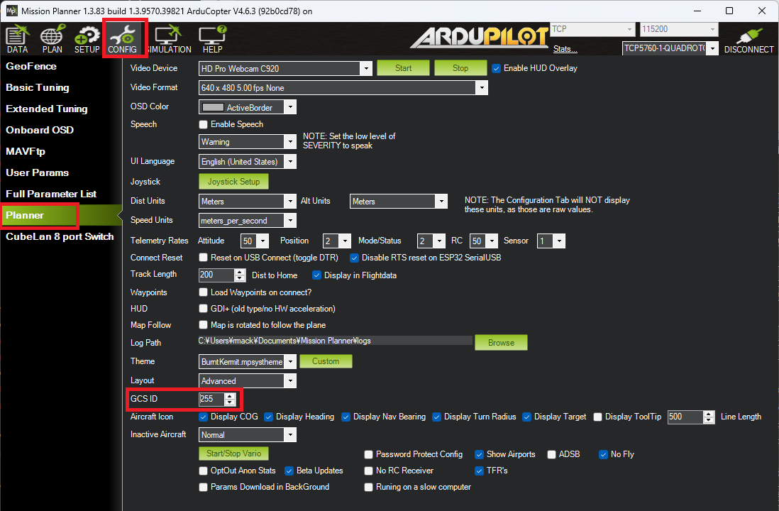 Push the Mission Planner’s Connect button