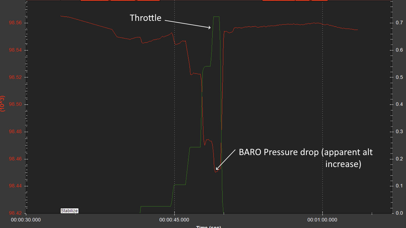 On very small multirotors, the autopilot’s barometer might be in the prop wash and have its readings impacted by that pressure which will vary with respect to the thrust (Throttle) being produced.