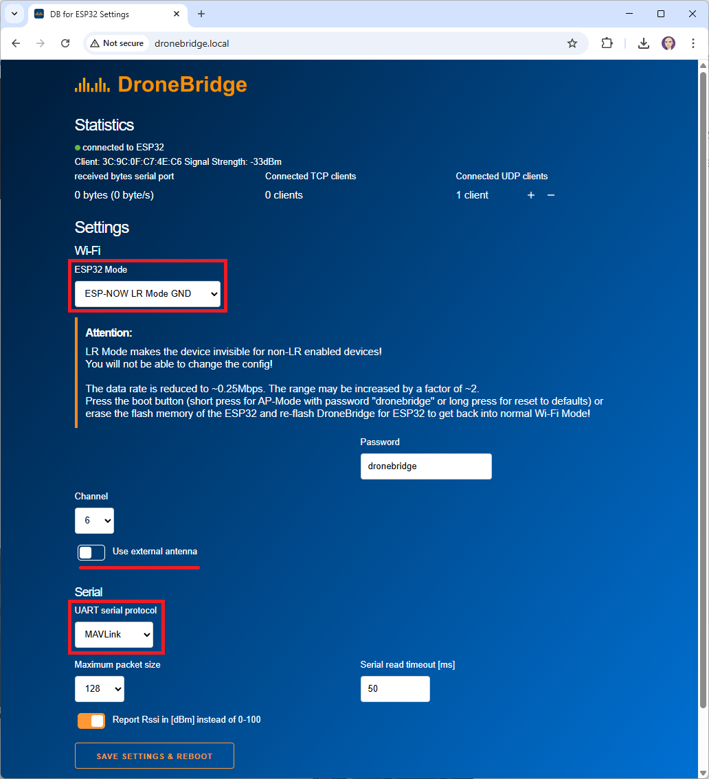 For more details see DroneBridge Docs Configuration Guide.