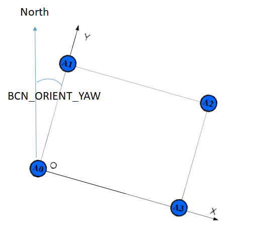 The anchors should be placed in a rectangular shape. Anchor 0 will act as “origin” and Y axis of Nooploop system will act as “North”. The configuration is slightly simpler if the line from anchor 0 to anchor 1 is due North but it is not required as the BCN_ORIENT_YAW parameter can be used to account this difference.
