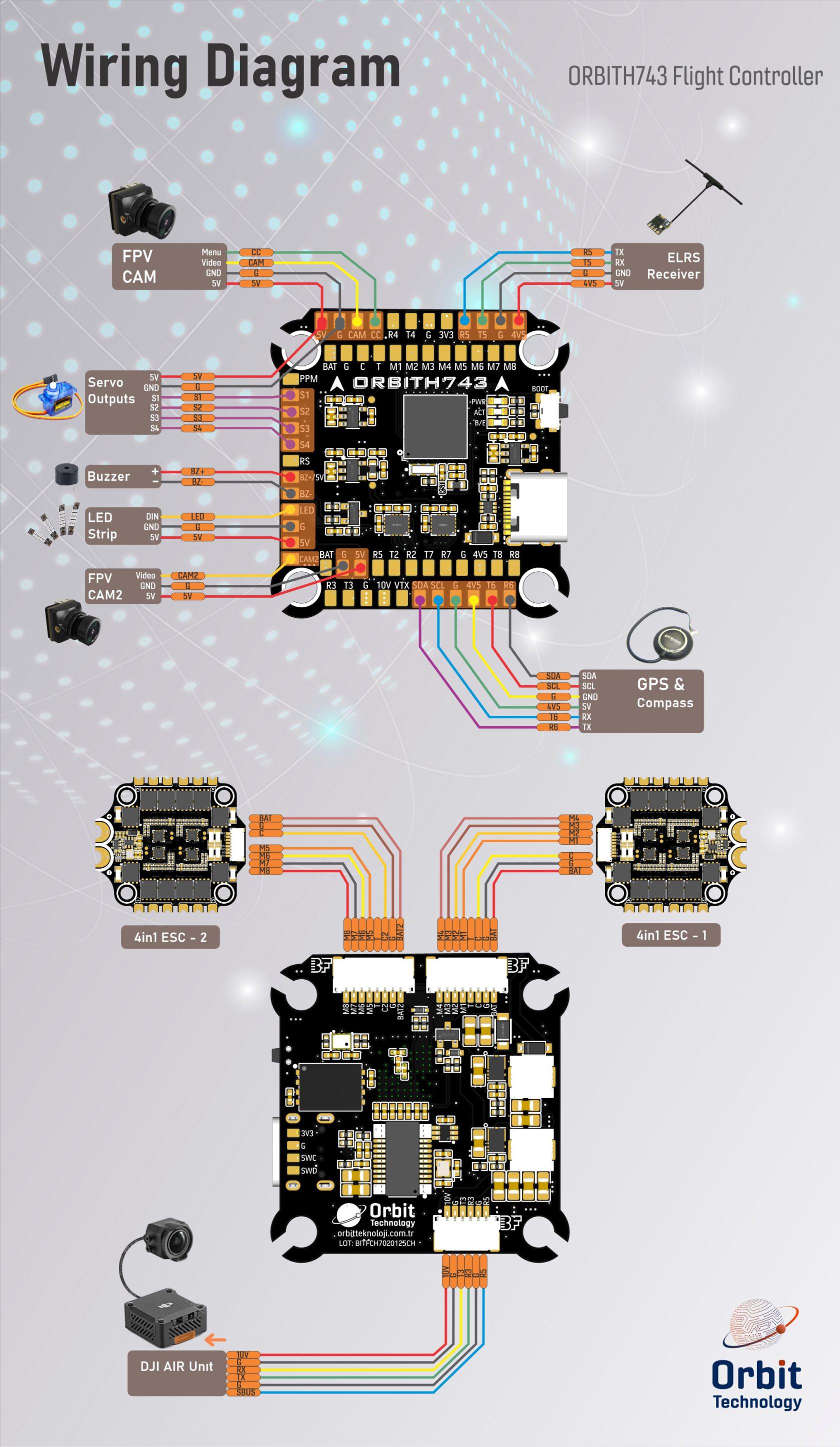 Firmware can be found in ArduPilot firmware repo under the ORBITH743 sub-folder.