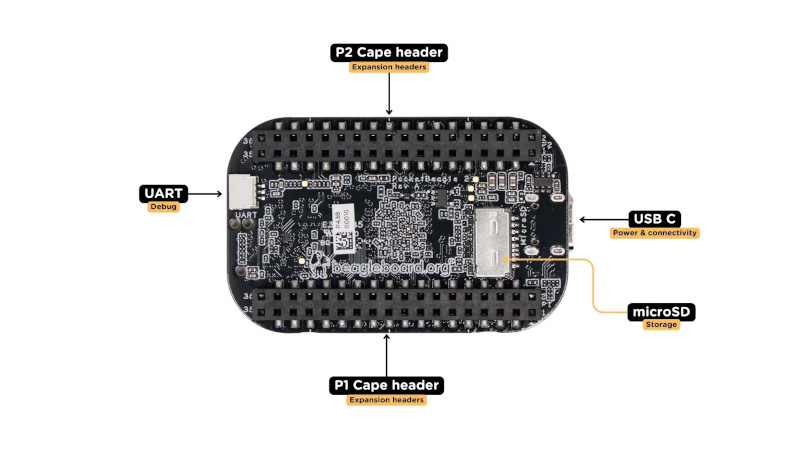 PocketBeagle 2 (PB2) is an upgraded version of the popular PocketBeagle, designed as an ultra-compact, low-cost, and powerful single-board computer (SBC). Targeted at developers, students, and hobbyists, PocketBeagle 2 retains the simplicity and flexibility of its predecessor while delivering enhanced performance and expanded features to support modern development needs. PocketBeagle 2 is ideal for creating IoT devices, robotics projects, and educational applications. Its small form factor and low power consumption make it a versatile platform for embedded development, whether prototyping or deploying at scale.