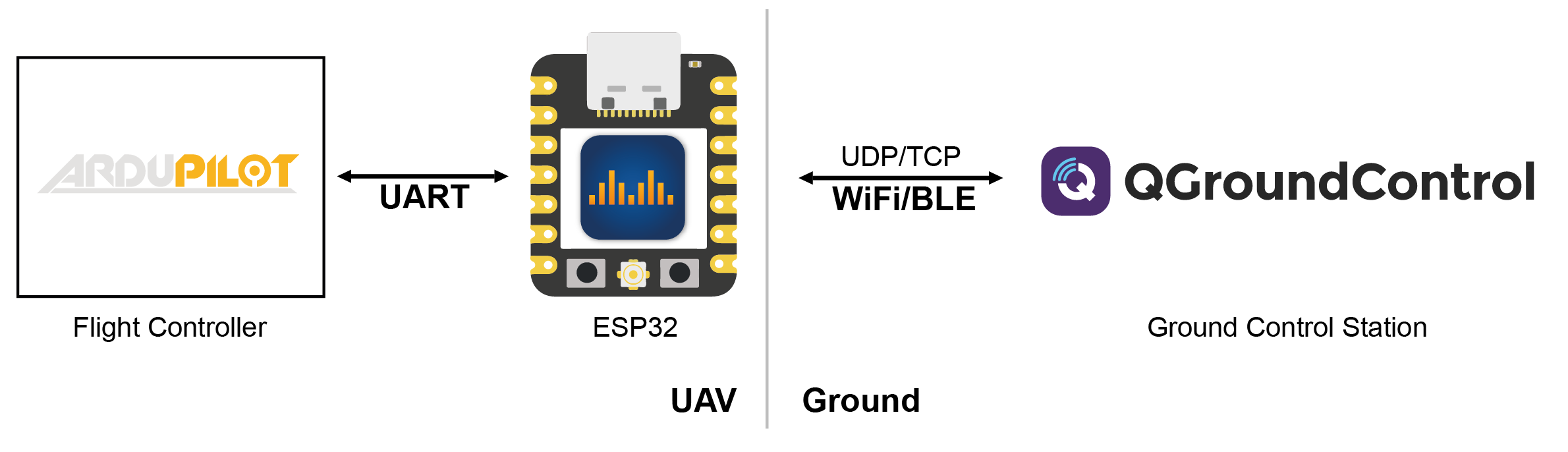 DroneBridge for ESP32 supports standard WiFi connections to an access point but can also operate as a standalone access point.
